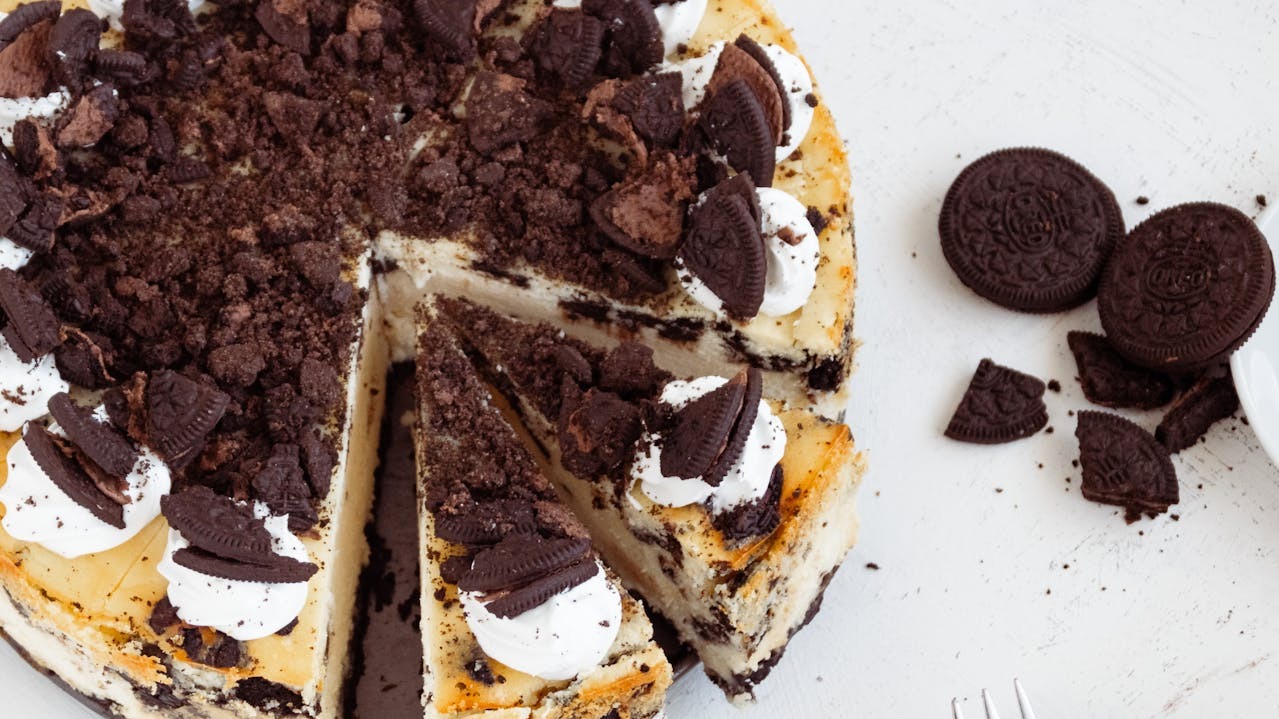 La tarta de chocolate y galletas Oreo es perfecta si buscas sabores intensos. Se trata de una combinación de crema, chocolate y galletas oreo que crean un contraste de textura que aman los niños y adultos.
