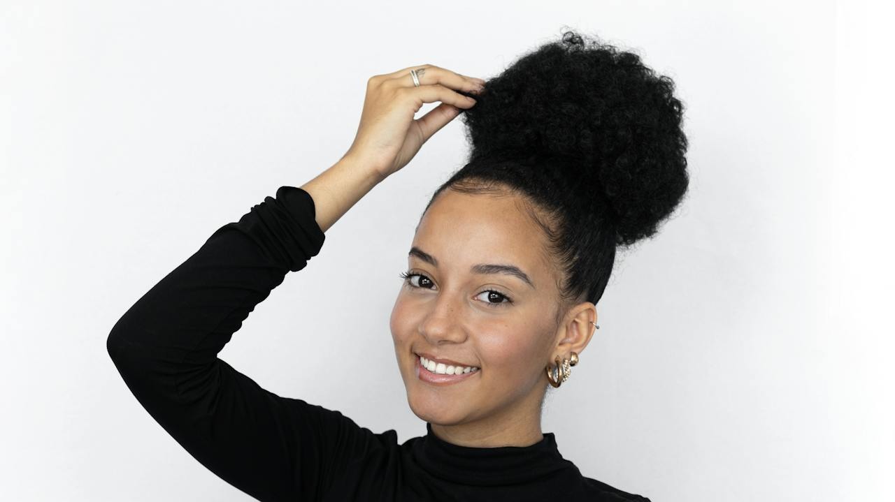 El recogido tipo piña es un clásico y te aporta comodidad sin dejar de lado el estilo. Se trata de recoger el cabello en la parte más alta de la cabeza mientras dejas los rizos sueltos y con volumen.
